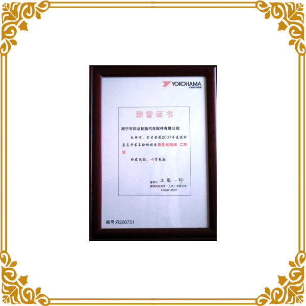 2007年度橫濱卡客車最佳經(jīng)銷商二等獎